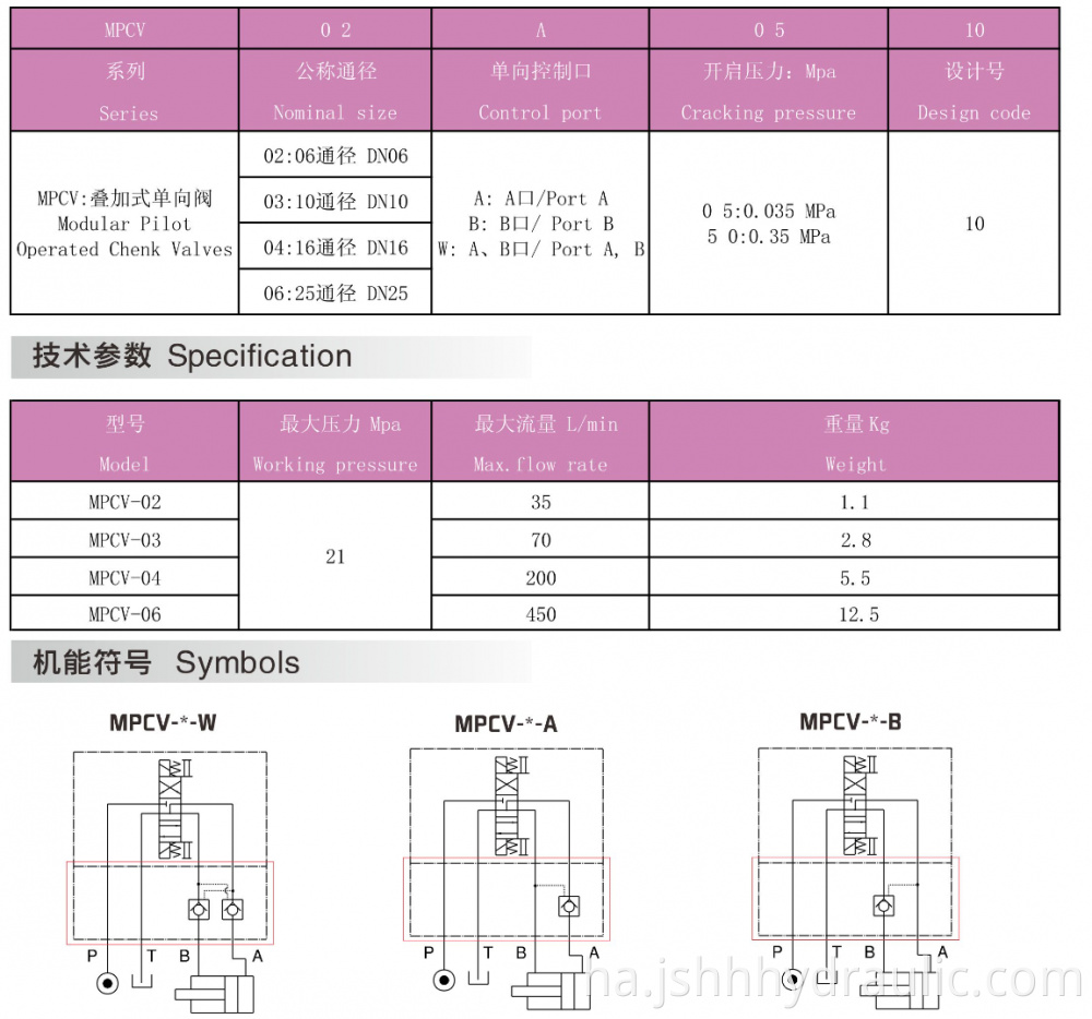 MPCV02 Superimoped Hydraulic Conctionction Conction Conction dubawa bawul na Vawves wani tsari ne mai amfani da kayan sarrafawa na hydraulic, wanda aka yi amfani dashi sosai a cikin tsarin hydraulic. Yana daukaka tsarin tsarin da ya dace, yana da ingantaccen aikin sarrafa shi mai amfani guda ɗaya, kuma yana iya sarrafa shugabanci yadda yakamata a cikin tsarin hydraulic. A sama da MPCV jerin bawul na MPCV ba mai biyan bawulen ba, za mu iya sanya bawuloli na shugabanci kamar Sosaidoid na bawul din DSG02.03 jerin.